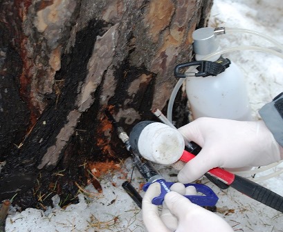Служба СЭС по уничтожению короеда-типографа в Южно-Сахалинске.